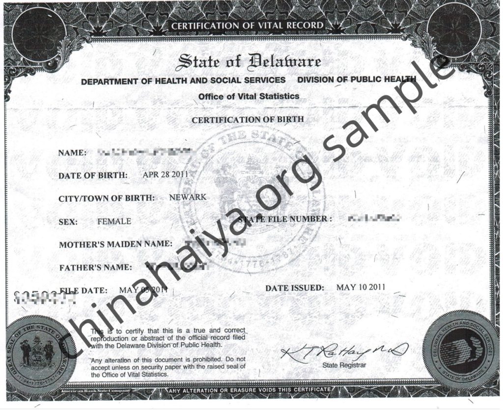 Delaware 出生证明 Birth Certificate 认证-DC