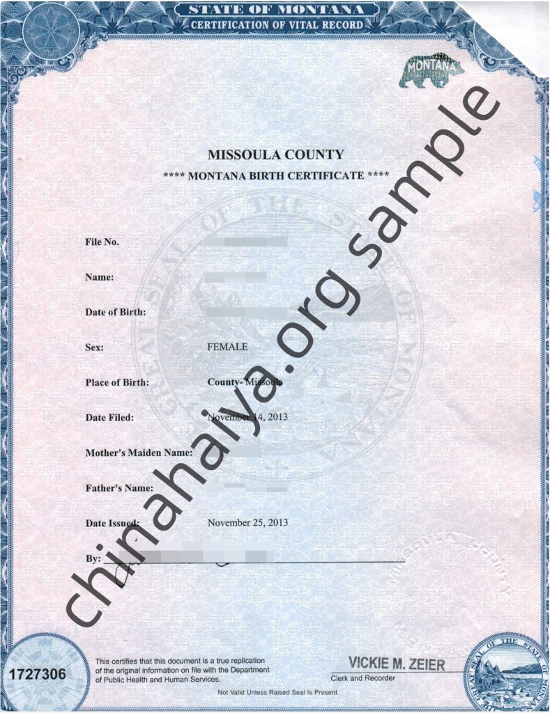 Montana 出生证明 Birth Certificate 认证-DC