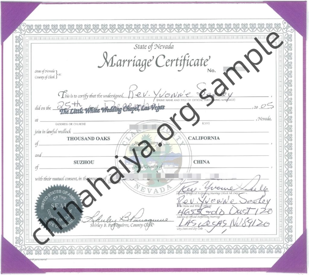 Nevada- 结婚证 Marriage Certificate – San Francisco